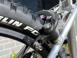 リアのUブレーキは台座が変更できるのでVブレーキにも変更可能です