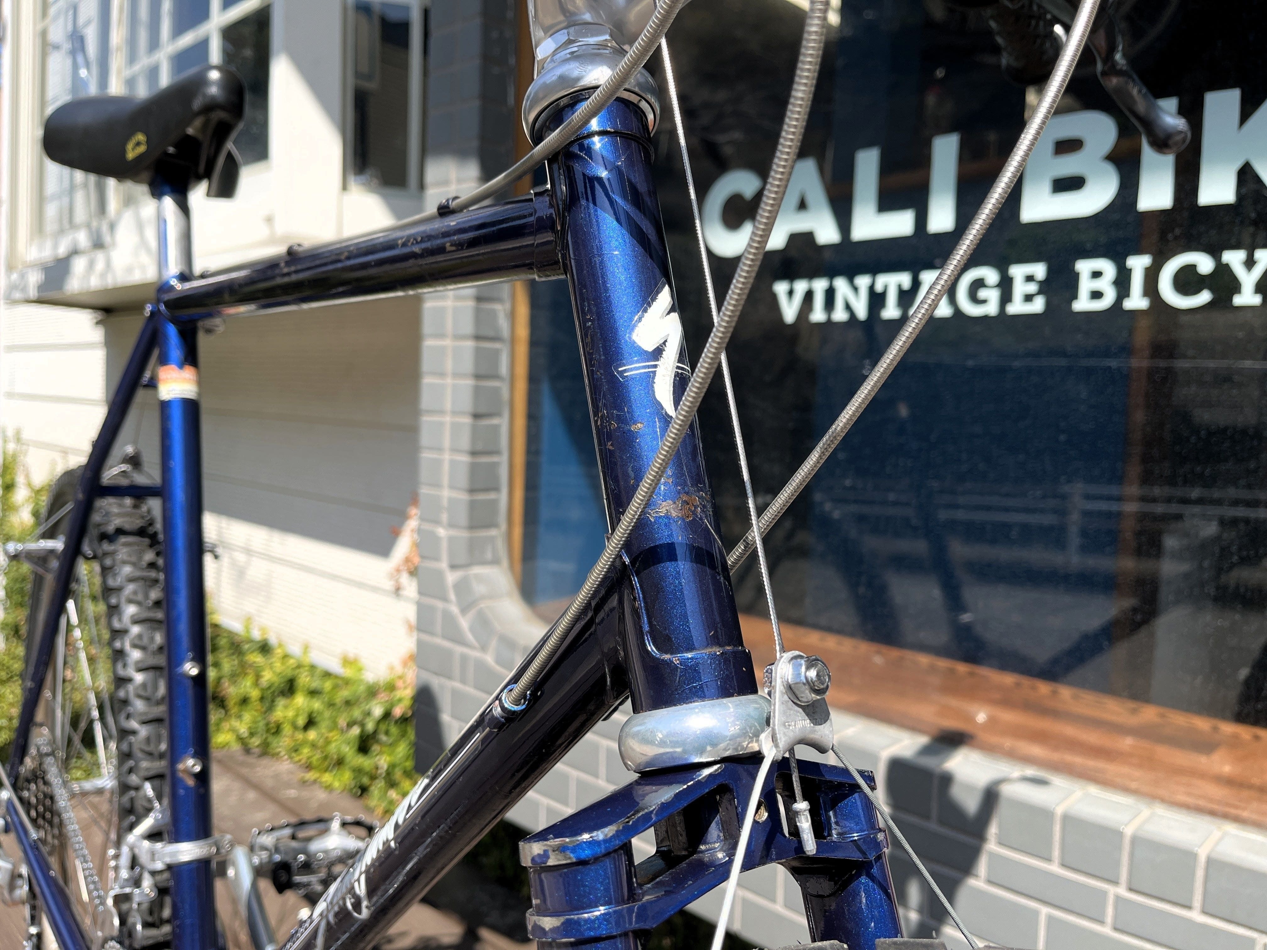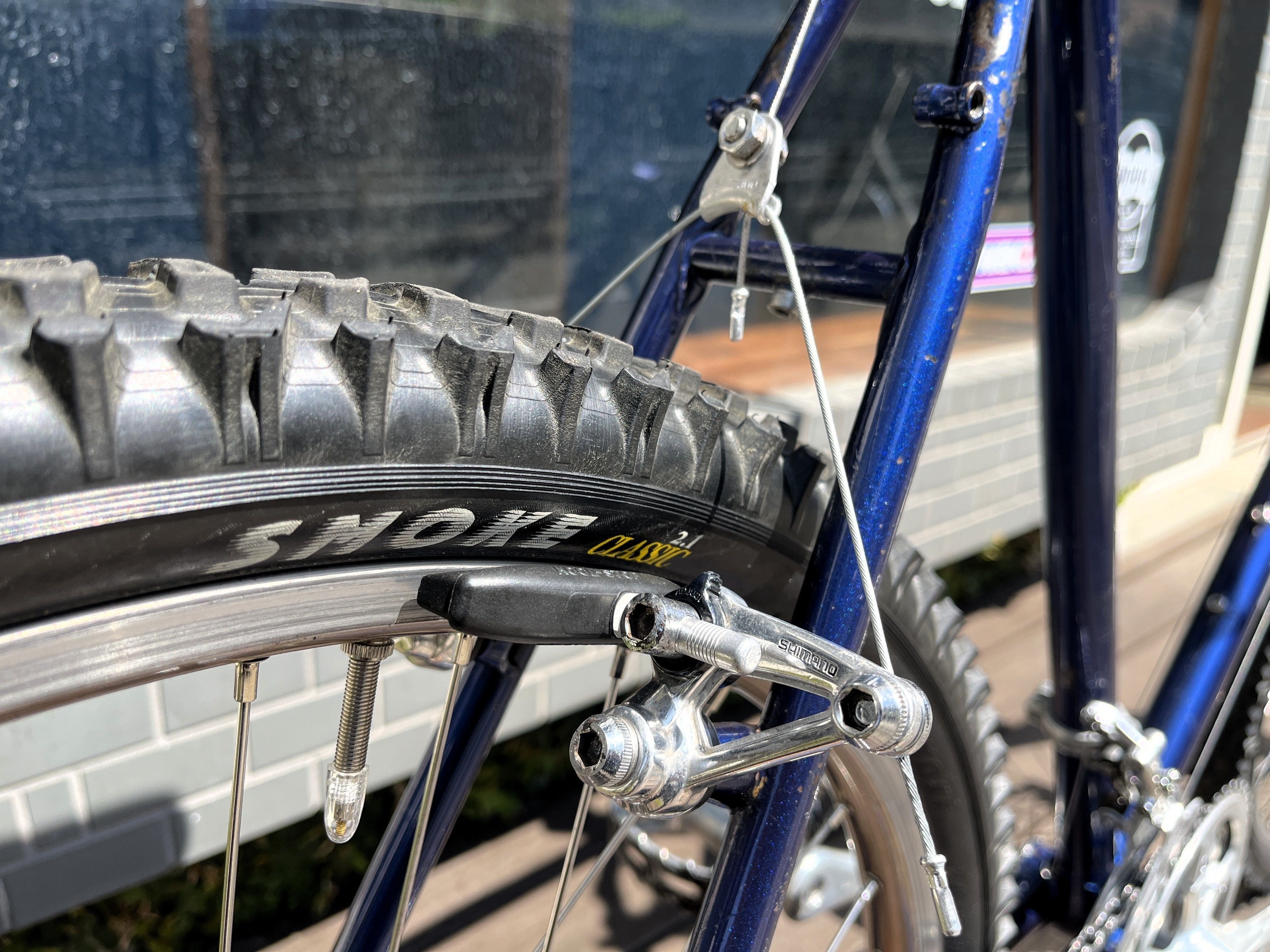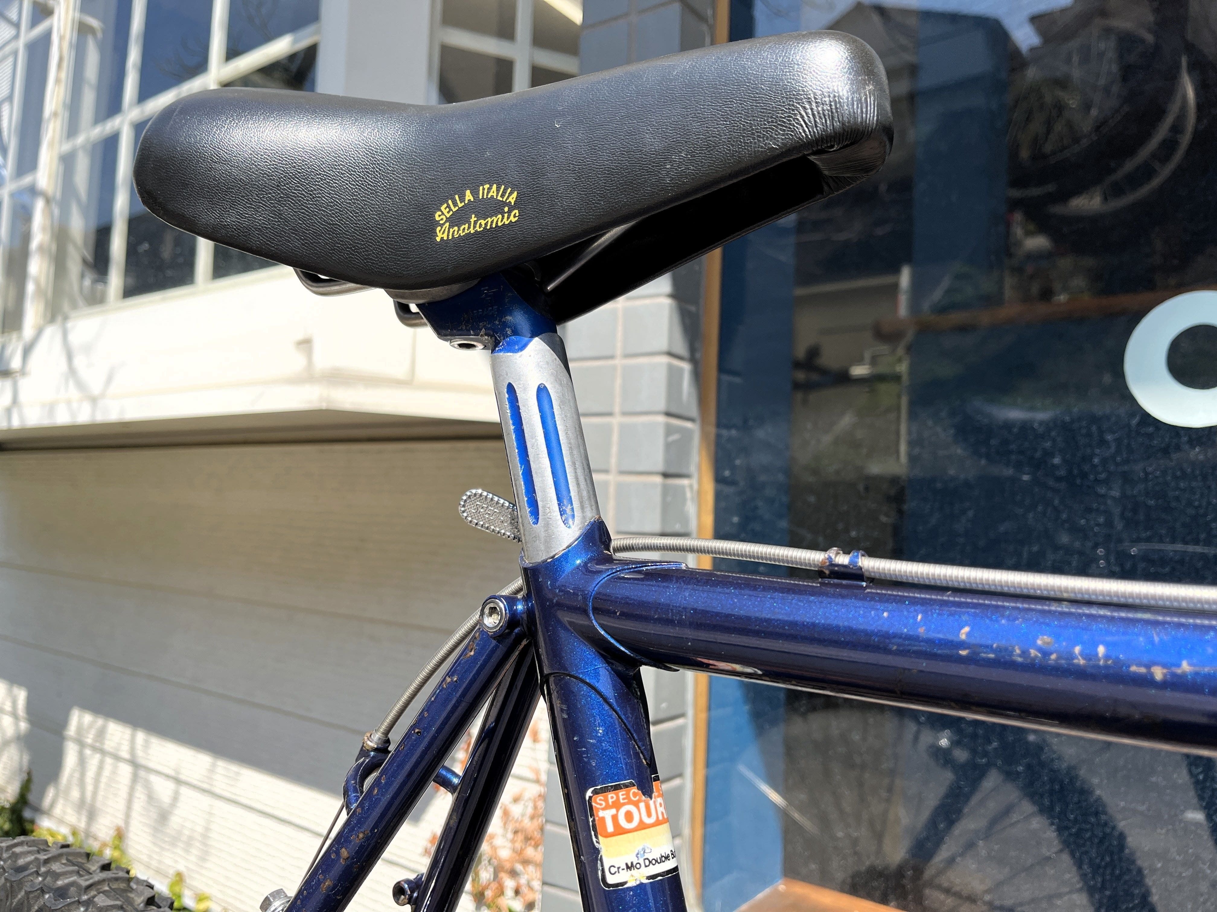 この年代までのスタンプジャンパーはヘッドチューブ、シートチューブ共に結構ねていて、BBハイトも高めでスタイリッシュな見た目となっています